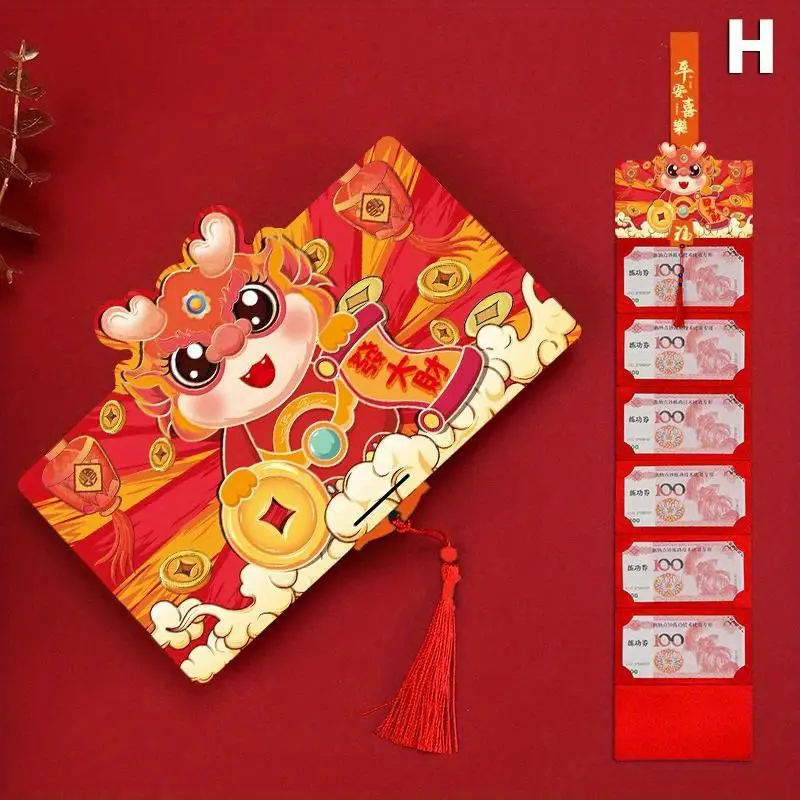 1pc 2024 Chinesisches Neujahr Faltbare Rote Umschläge, 6