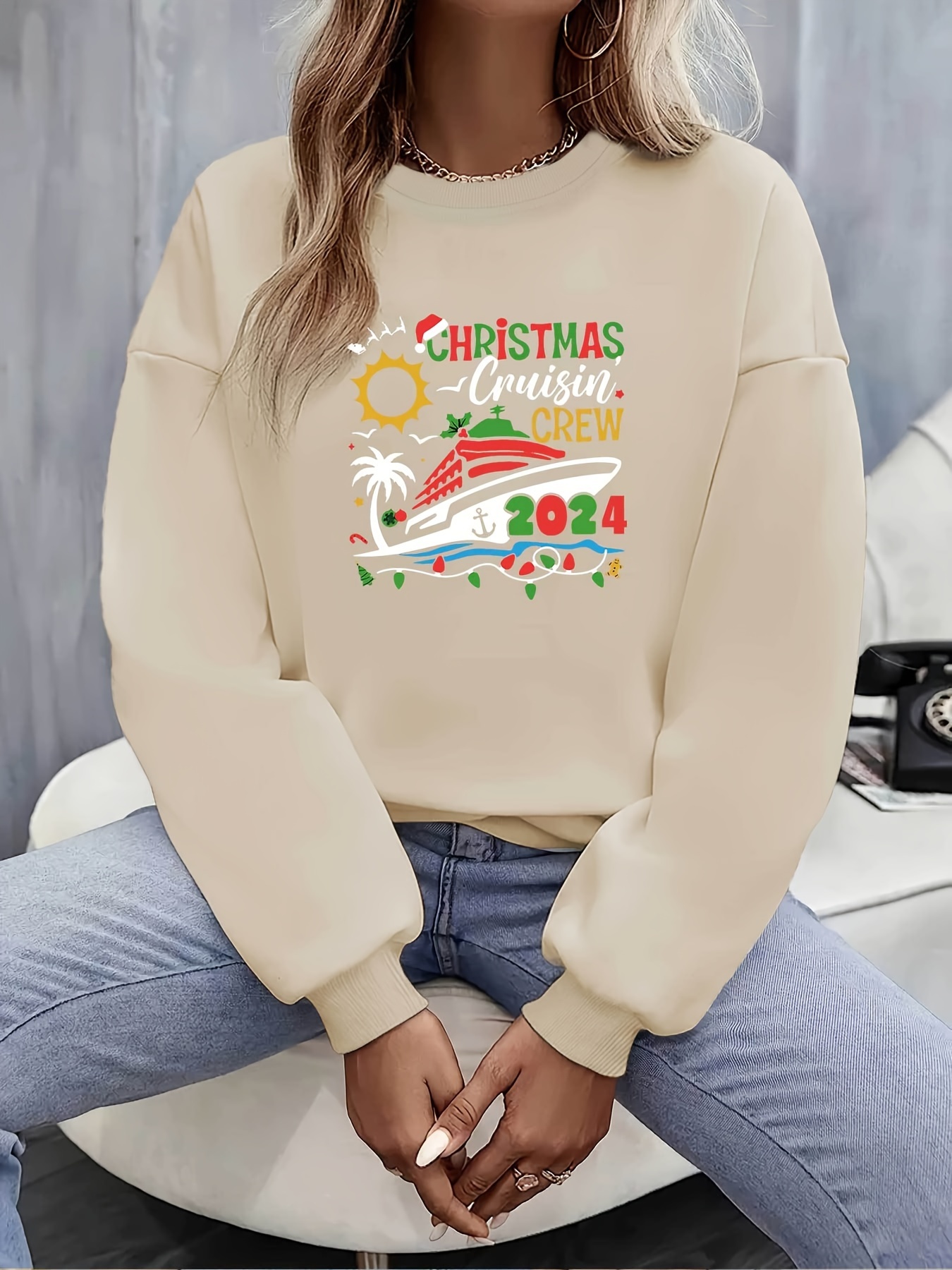 Plus Size Jultröja, Dam Plus Kryssningsfartyg & Konst Brevtryck